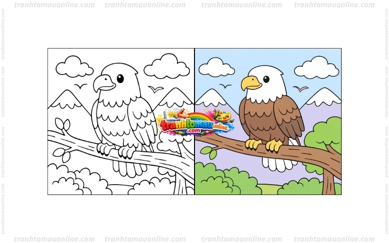 Tranh tô màu chim đại bàng luôn thu hút nhiều bé khi bắt đầu làm quen với các bức tranh về loài chim trong thiên nhiên. Hình ảnh đại bàng sải cánh trên bầu trời, đậu trên cành cây mang đến nhiều chi tiết thú vị để bé lựa chọn màu sắc. Tại bài viết sau của Tranh Tô Màu Online, ba mẹ có thể nhanh chóng chọn mẫu tranh phù hợp và mở giao diện tô màu trực tuyến để bé bắt đầu tô chỉ trong vài bước đơn giản.