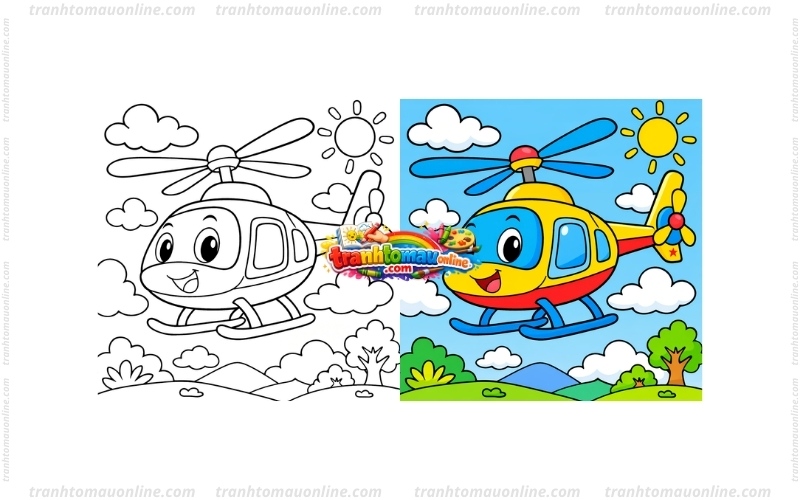 - Phát triển trí tưởng tượng: Bé có thể sáng tạo nhiều màu sắc khác nhau cho chiếc trực thăng thay vì chỉ theo màu thực tế.