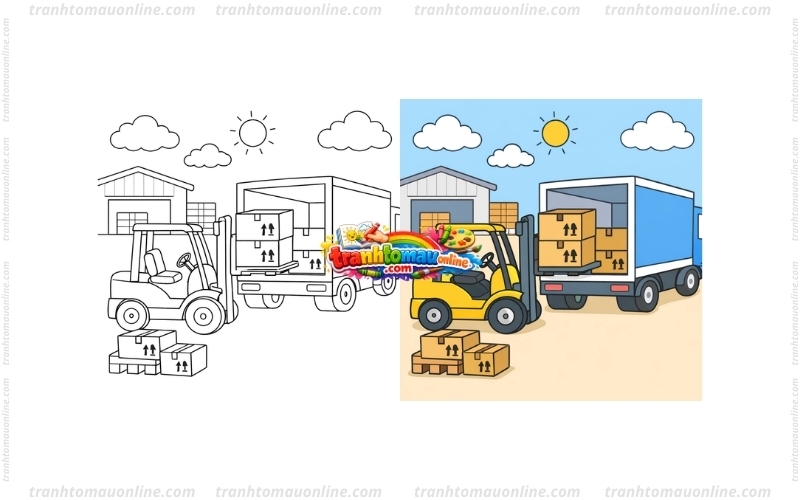 - Chọn tranh có ít chi tiết phức tạp: Đối với bé nhỏ, nên chọn tranh xe nâng đơn giản để bé không bị rối khi tô.