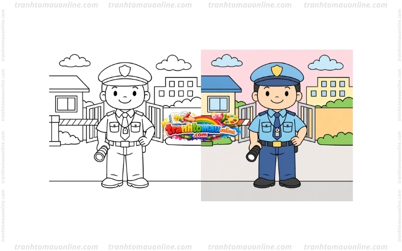 Tranh tô màu bác bảo vệ là chủ đề gần gũi giúp bé nhận biết hình ảnh người bảo vệ trật tự, an ninh trong cuộc sống hằng ngày. Những bức tranh với nét vẽ đơn giản, dễ tô sẽ giúp bé vừa giải trí vừa rèn luyện khả năng sáng tạo. Trong bài viết này của Tranh Tô Màu Online, ba mẹ và bé có thể kéo xuống xem các mẫu tranh bên dưới và click vào hình ảnh yêu thích để tô màu trực tuyến ngay trên website.