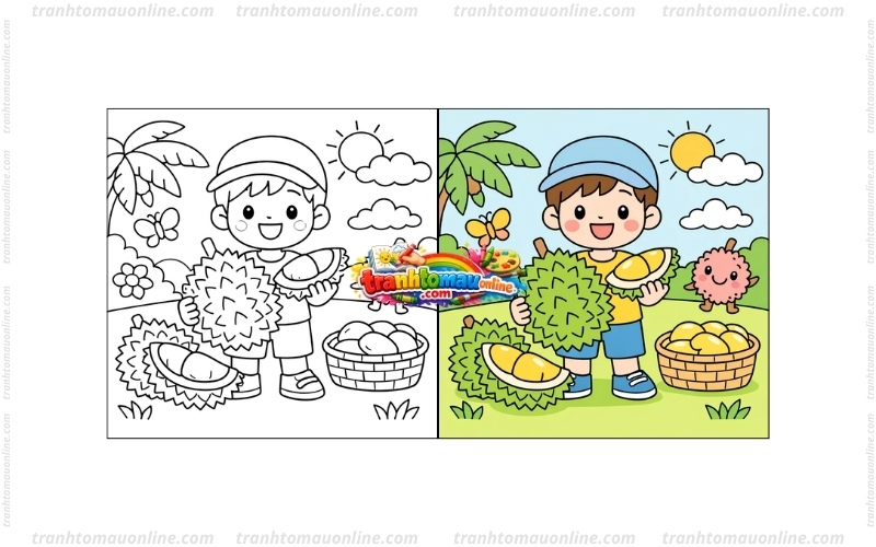 Dưới đây là những mẫu tranh tô màu sầu riêng được nhiều bé yêu thích khi tập tô. Ba mẹ và bé chỉ cần nhấn vào hình ảnh mình thích, hệ thống trên Tranh Tô Màu Online sẽ tự động mở giao diện tô màu trực tuyến để bé lựa chọn màu sắc và hoàn thành bức tranh theo ý muốn.