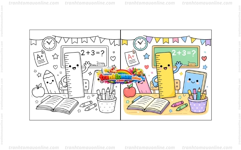 Tranh tô màu thước kẻ là chủ đề quen thuộc gắn liền với đồ dùng học tập và lớp học của bé. Những hình vẽ đơn giản như thước kẻ, bút chì, sách vở hay bảng đen giúp trẻ vừa giải trí vừa làm quen với thế giới học đường. Trong bài viết này, Tranh Tô Màu Online tổng hợp nhiều mẫu tranh thú vị với nhiều bối cảnh khác nhau để bé dễ dàng lựa chọn và tô màu trực tuyến ngay trên website.